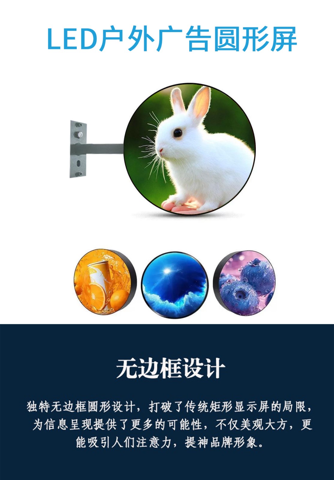 小招牌大用处,LED创意显示屏:可显裸眼3D效果的平面即插即用圆形店招全尺寸LED显示屏,高亮度,低功耗,寿命长,轻便,美观。主要用于一些银行、连锁店铺、候机楼、展厅、酒店、酒吧、室内商场、城市广场等场所,对于提升整体形象及广告宣传等具有非凡意义。