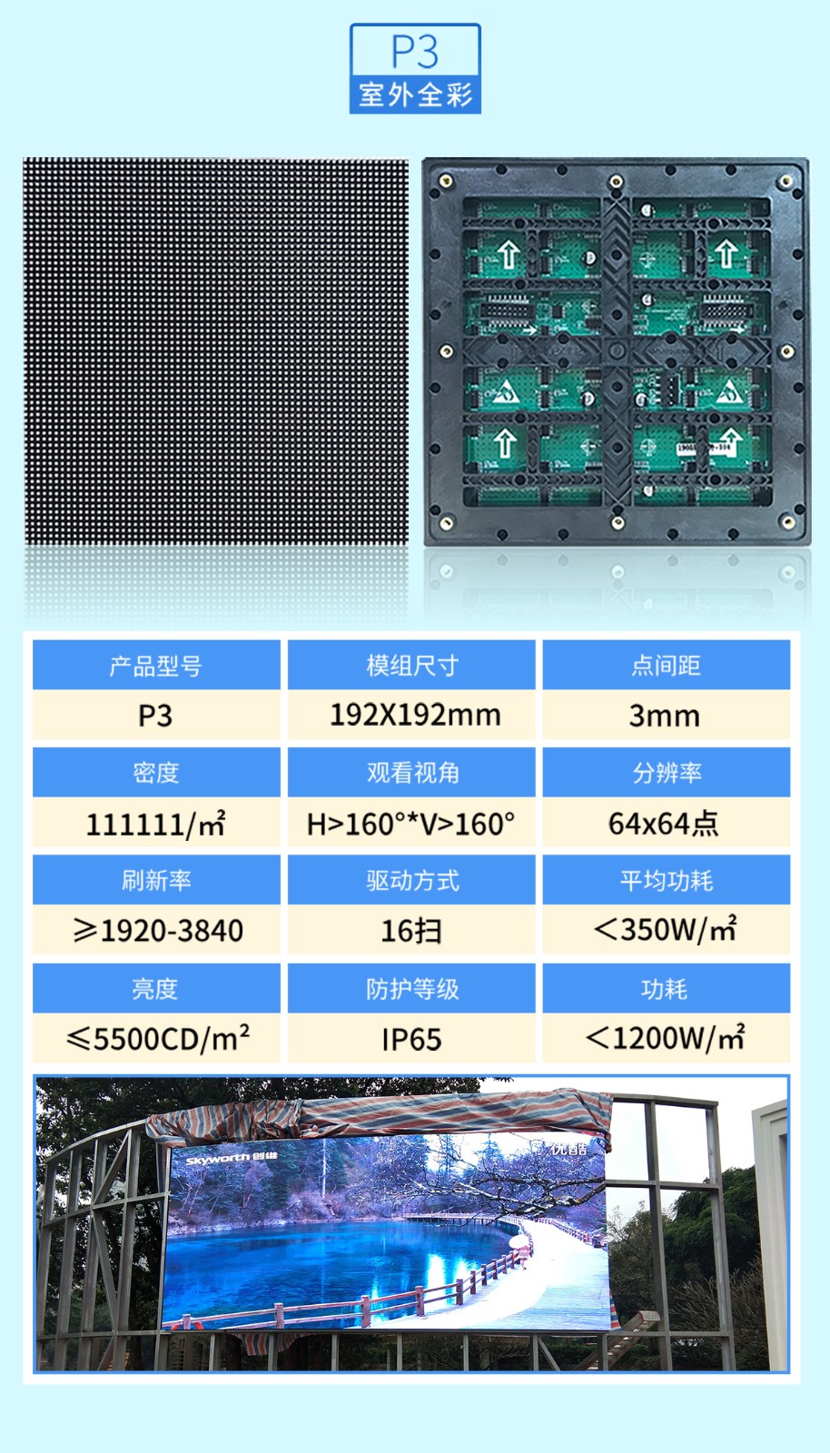 户外全彩LED显示屏,高清高亮,具备防水防尘特性,拥有宽广视角和自动调节亮度功能,IP级别高,支持无缝拼接。