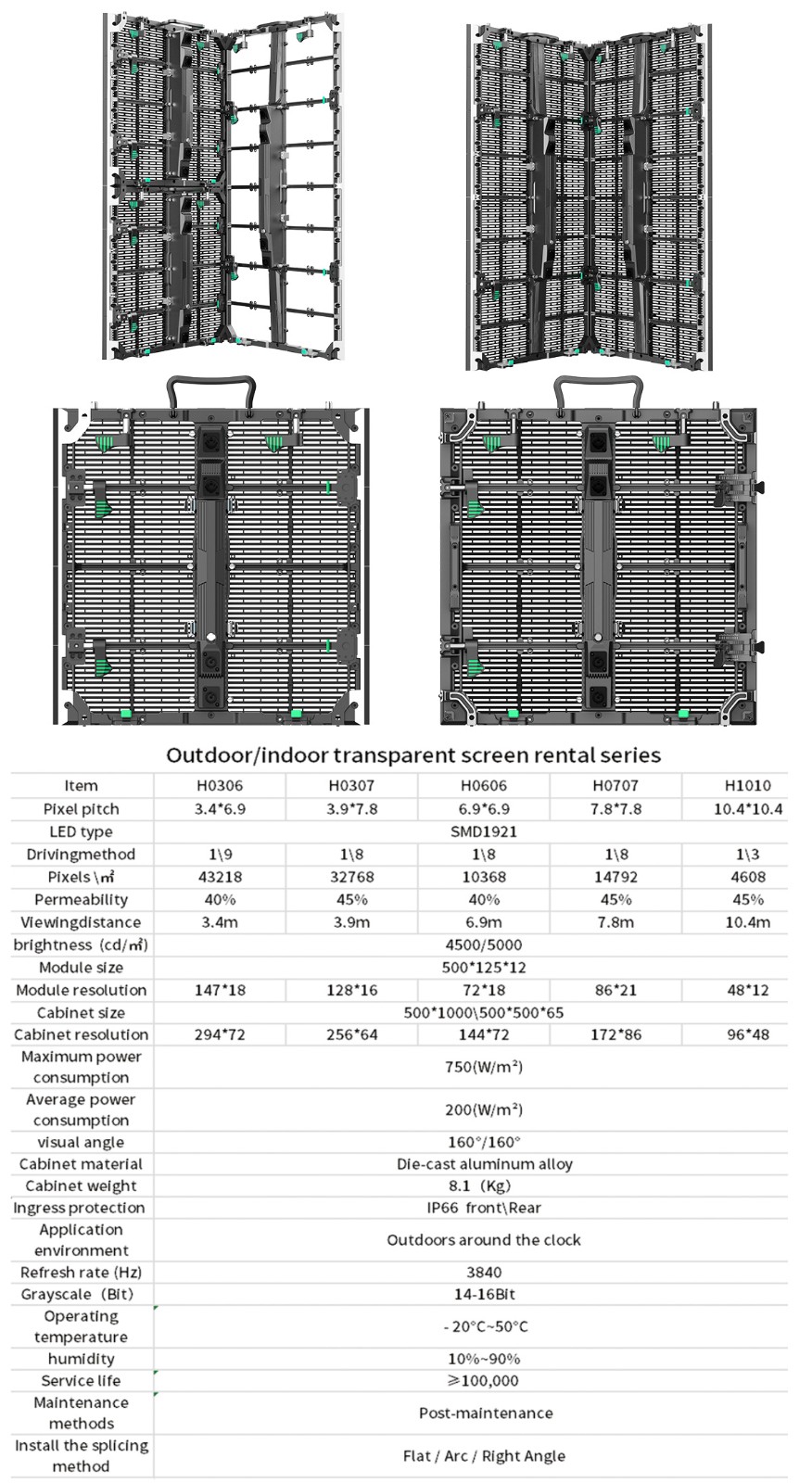 Stage rental transparent screen 500*1000 cabinet